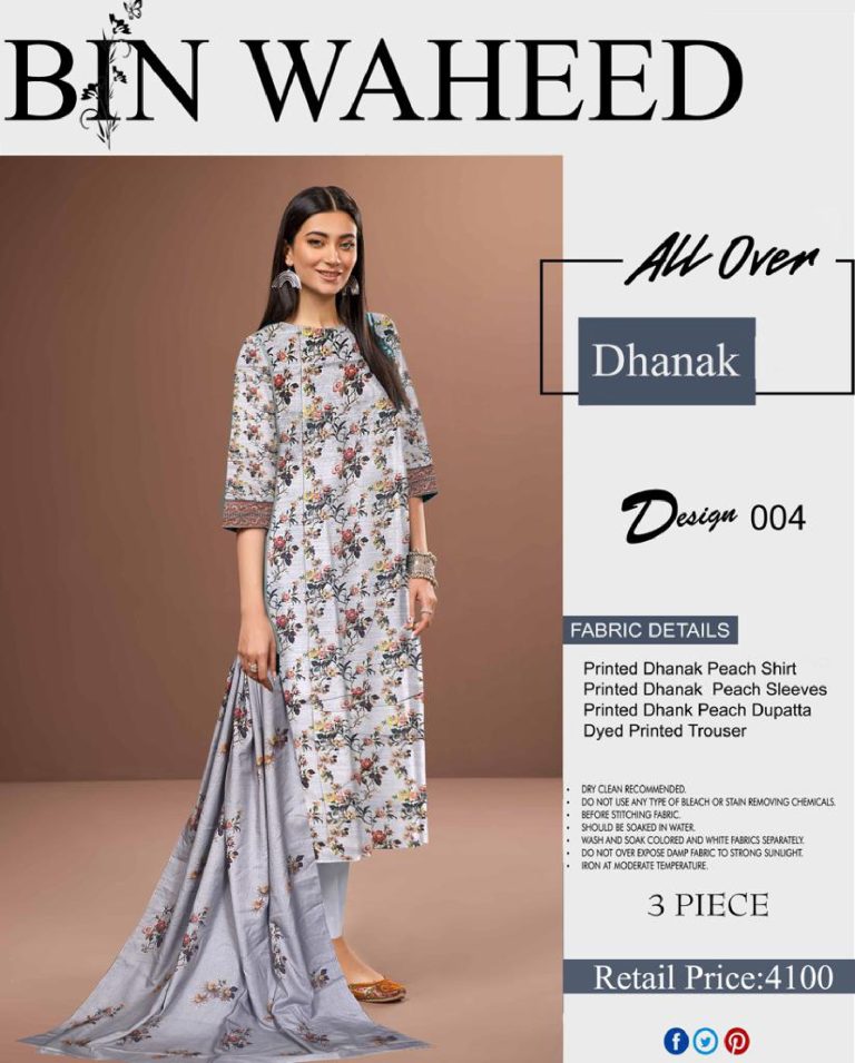 Here you can get Bin Waheed Dhanak 3pc Sale on Printed lawn in 2025. You can buy beautiful designs on sale in Bin Waheed Dhanak 3pc. Just order and get a big sale on the Dhanak 3pc sale.